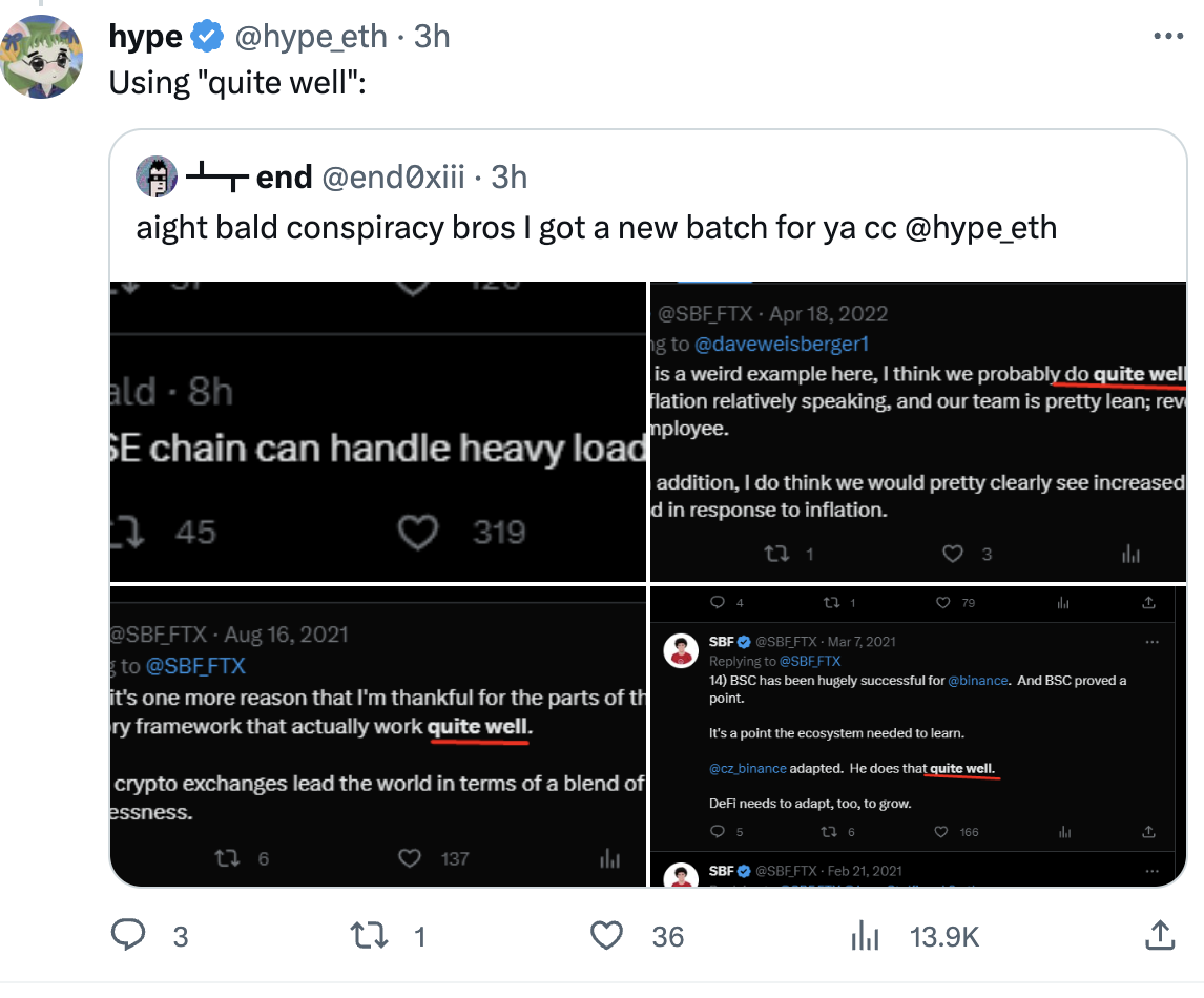2)$BALD 部署者發布推文行文習慣很像 SBF