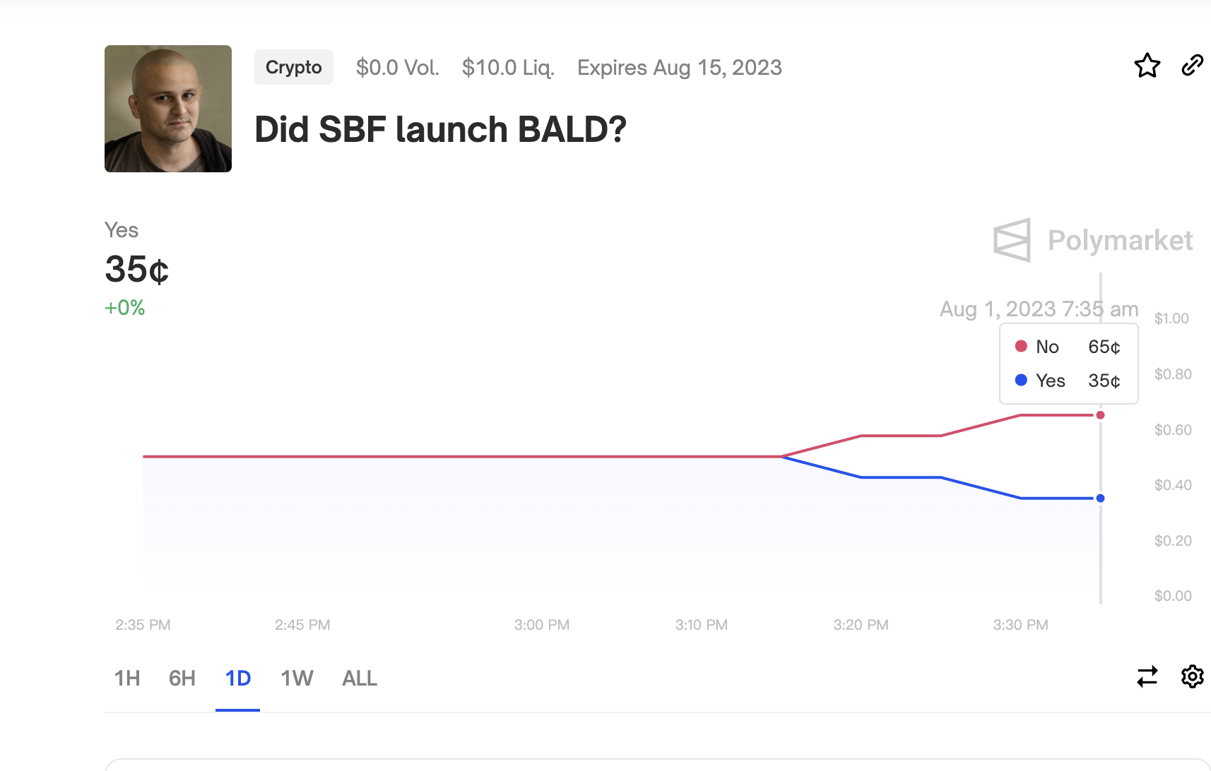 polymarket 上甚至有人發起了「Did SBF launch BALD?」對賭市場。看了這么多證據,你也認為 SBF 是 Bald 背后主導嗎?
