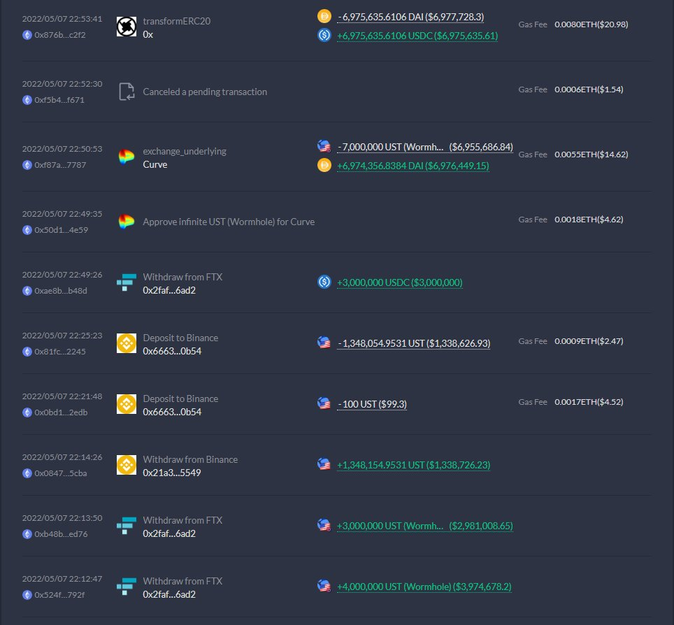 一個一直往$BALD 部署者關聯 Binance 地址打錢的地址,是觸發 UST 脫鉤的錢包之一。